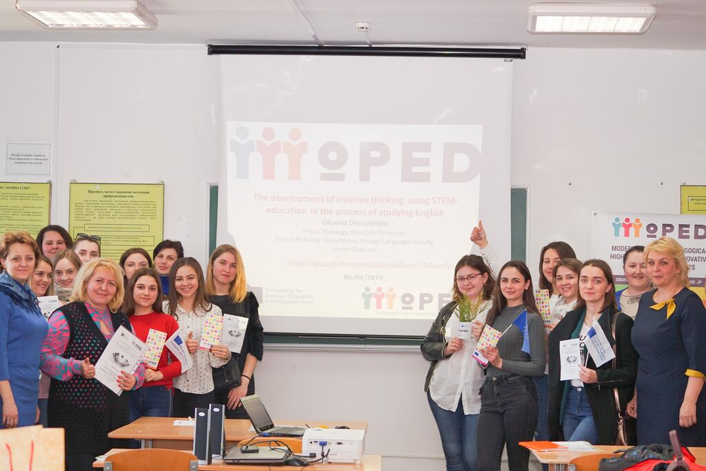 У рамках діяльності міжнародного проекту програми ЄС ERASMUS+ КА2 – № 586098-EPP-1-2017-1-UA-EPPKA2-CBHE-JP «Модернізація педагогічної вищої освіти з використанням інноваційних технологій викладання – MoPED» вчителі початкових класів Івано-Франківської області взяли участь у навчальних тренінгах і семінарах, спрямованих на вдосконалення професійної майстерності, медіаосвітньої грамотності та цифрової компетентності.