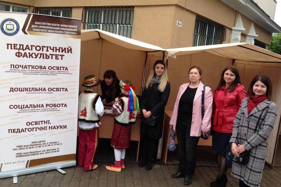 Педагогічний факультет 5 травня взяв участь у презентації університету в рамках святкування Дня міста Івано-Франківськ. Доцент кафедри педагогіки початкової освіти Воробець О.Д., доценти кафедри фахових методик і технологій початкової освіти Бай І.Б. і Струк А.В., доцент кафедра педагогіки імені Б. Ступарика Ковальчук В.М., доцент кафедри теорії та методики дошкільної і спеціальної освіти Скоморовська І.А. розповіли учасникам свята про особливості та переваги навчання на спеціальностях факультету, можливості подальшого працевлаштування та фахового зростання. Викладач кафедри соціальної педагогіки та соціальної роботи, кандидат педагогічних наук Сабат Н.І. провела для бажаючих сеанси казкотерапії.
