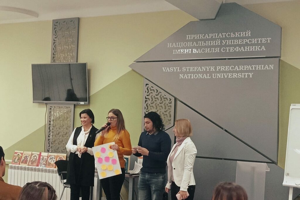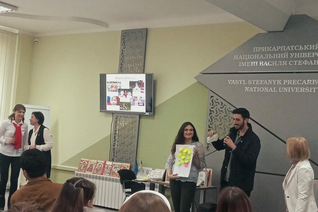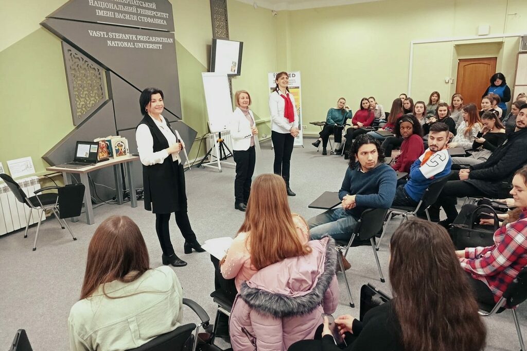 4 березня у Центрі інноваційних освітніх технологій «PNU-Eco-System» відбулося інтегроване заняття «Казки народів світу. Традиції дитинства». Студенти ІІІ курсу спеціальності «Початкова освіта» та групи ПОА-42 педагогічного факультету, спільно з студентами-іноземцями Івано-Франківського національного технічного університету нафти і газу, мали можливість повернутися в дитинство і ознайомитися з казками різних народів світу. На занятті було інтегровано три дисципліни: дитяча література та методика навчання літературного читання, англійська література для дітей та українська мова як іноземна. Організатори, доктор філологічних наук, професор Тетяна Качак, кандидат педагогічних наук, доцент Тетяна Близнюк та кандидат філологічних наук, доцент Наталія Литвин, одразу зробили комфортне середовище для спілкування. Студенти педагогічного факультету розмовляли англійською мовою, щоб порозумітися з колегами, які приїхали з інших країн світу.