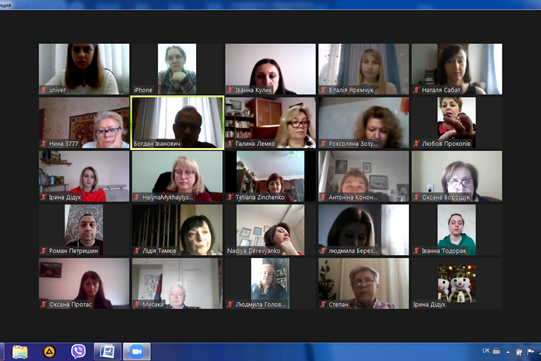 Захід проходив у режимі відеоконференції на платформі Zoom. У ньому взяли участь проректор з наукової роботи Прикарпатського національного університету імені Василя Стефаника, доктор філософських наук, професор Галина Михайлишин, завідувач кафедри соціальної педагогіки та соціальної роботи, кандидат педагогічних наук, професор Богдан Ковбас, професори й доценти кафедр Прикарпатського національного університету імені Василя Стефаника, Ніжинського державного університету імені Миколи Гоголя, Тернопільського національного технічного університету ім. І. Пулюя, студенти спеціальності “Соціальна робота”. Модерували онлайн зустріч Надія Сабат та Наталія Сабат.