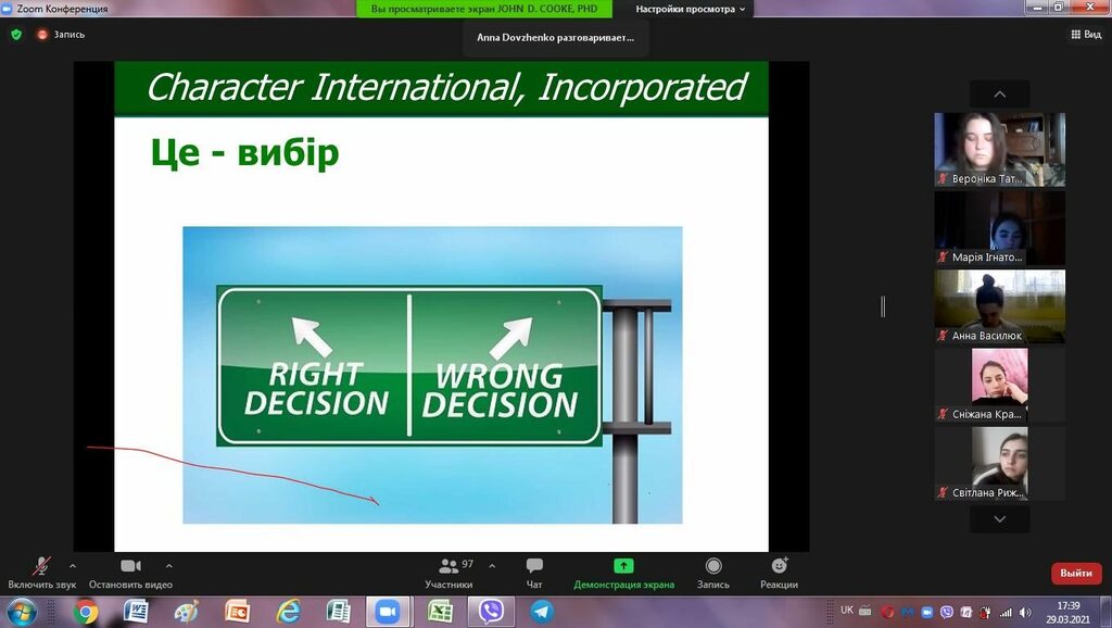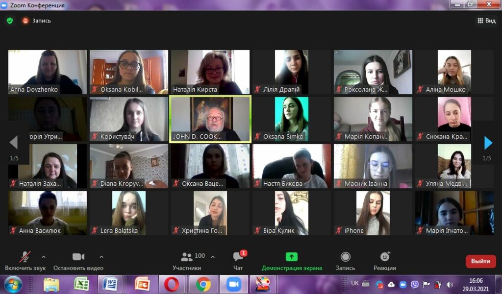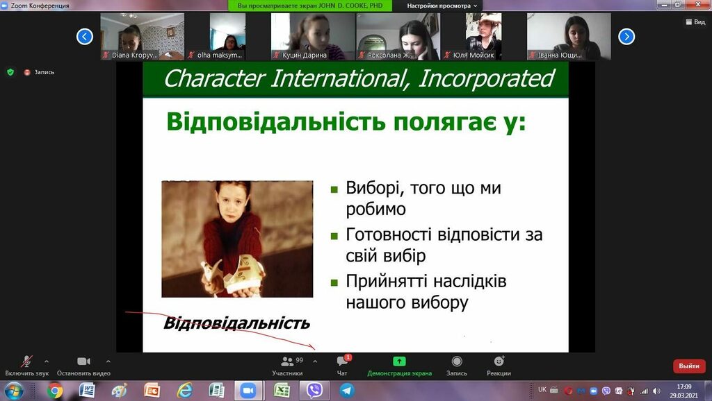 29 березня 2021 року розпочалася серія семінарів «Виховання характеру дітей», «Виховання характеру дітей. Конфлікти та їх вирішення» для студентів та викладачів спеціальності «Дошкільна освіта» Педагогічного факультету Прикарпатського національного університету імені Василя Стефаника.Тренер програми «Character International» – доктор психологічних наук, психотерапевт, професор Джон Кук (США, м. Даллас, Техас ), перекладачка – директорка центру альтернативної освіти KAIZEN Анна Довженко.