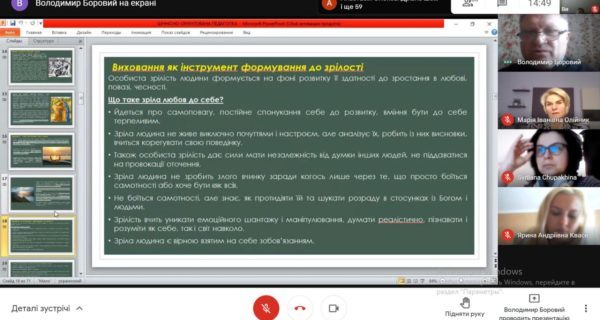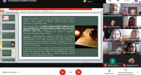 Роздумували про роль педагога у вихованні духовності дітей, духовну зрілість людей, особливості духовно-ціннісних орієнтирів сьогодення, необхідність безумовної любові (особливо до дітей), дар людського життя.