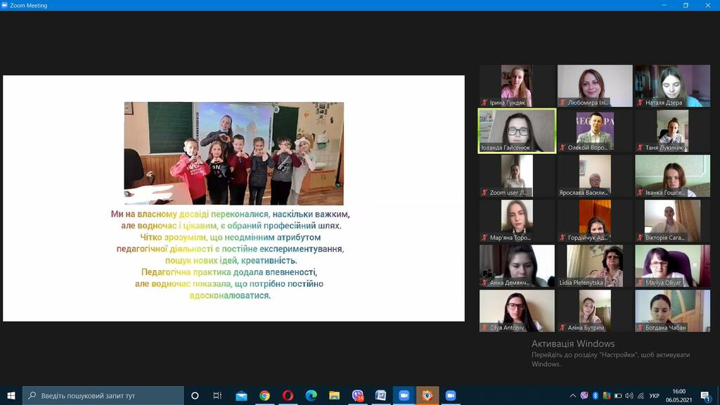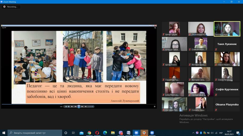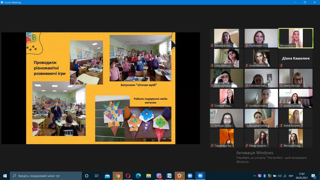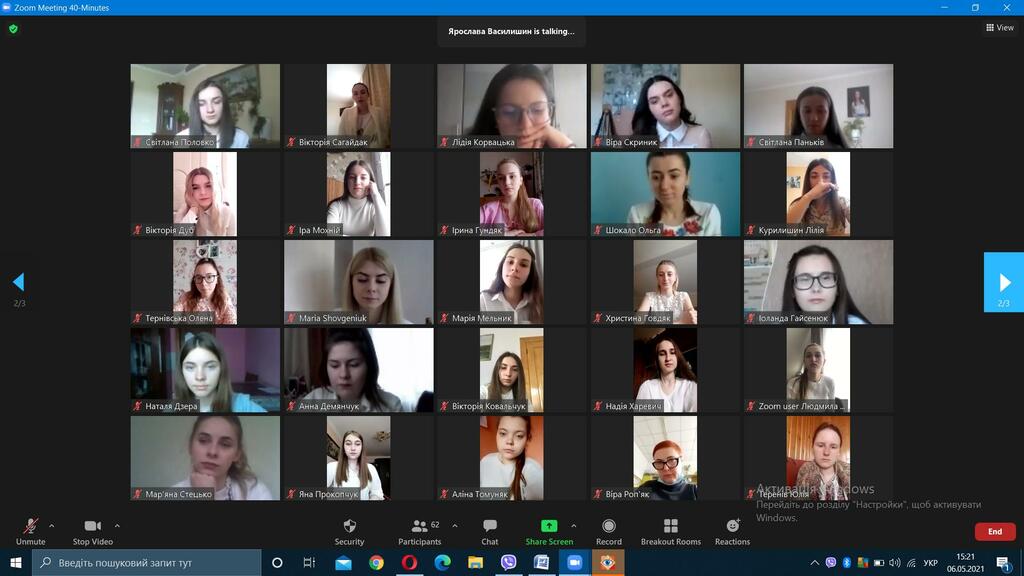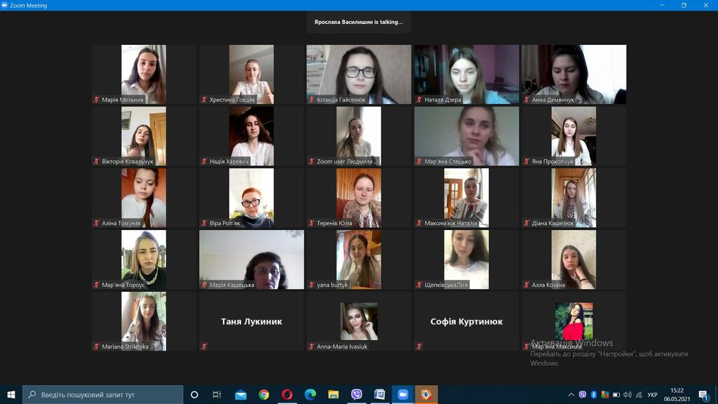 6 травня 2021 р. відбувся захист виробничої практики студентів 3 курсу денної форми навчання спеціальності «Початкова освіта». На заході були присутні завідувач відділом виробничої (навчальної) практики ДВНЗ «Прикарпатський національний університет імені Василя Стефаника» Василишин Я.І., заступник декана педагогічного факультету, кандидат педагогічних наук, доцент Кирста Н.Р., завідувач кафедри педагогіки початкової освіти, доктор педагогічних наук, професор Оліяр М.П., факультетський керівник виробничої практики, кандидат педагогічних наук, доцент Ілійчук Л.В., доктор філологічних наук, професор Качак Т.Б., доктор педагогічних наук, професор Котик Т.М., кандидат педагогічних наук, доцент Плетеницька Л.С., кандидат філологічних, доцент Воробець О.Д., кандидат педагогічних наук, доцент Копчук-Кашецька М.С. та ін.