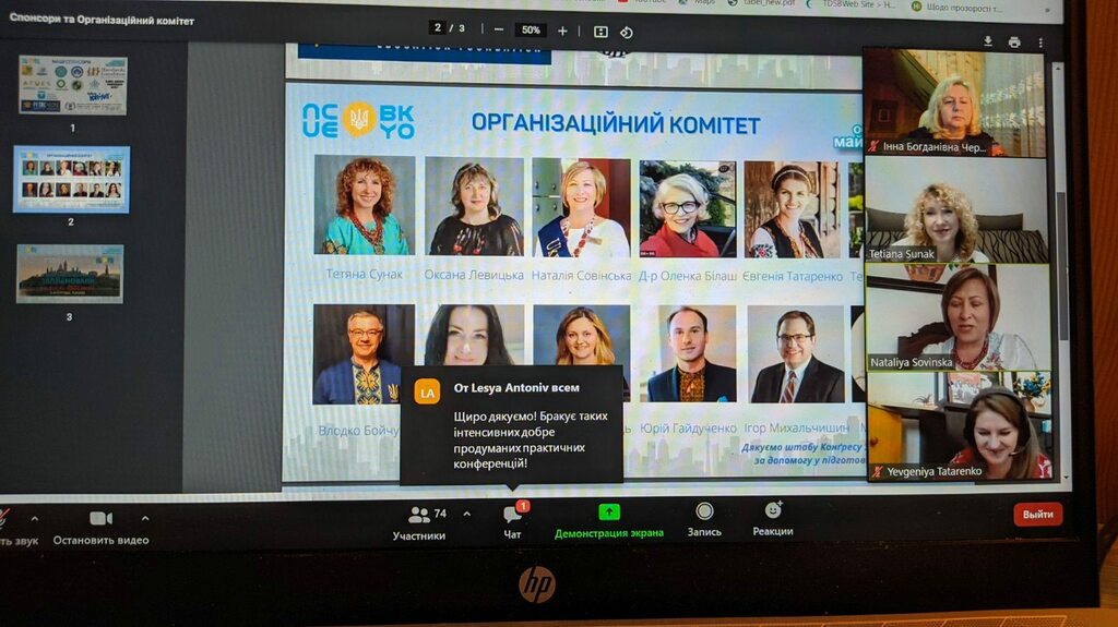 На конференції під час роботи «Всеканадських освітніх онлайн майстер-класів» доцентка Інна Червінська презентувала доповідь з елементами практичного воркшопу на тему: «Музейна педагогіка як інструмент взаємодії закладів освіти і музеїв у сучасному соціокультурному просторі» під час якої розкрила особливості співпраці ЗЗСО і музеїв, продемонструвала форми співпраці та техніки зворотнього зв’язку між ними. Як зазначає доповідачка, заходи такого рівня сприяють розвитку української освіти не тільки в Україні, а й у діаспорі, збагачуючи її учасників новим практичним досвідом, інноваційними ідеями, сприяють творчому розвитку та професійному зростанню. Незважаючи на різницю в часі, величезну кількість учасників, дуже насичений графік (робота конференції тривала понад 8 годин) було цікаво, науково, практико зорієнтовано.