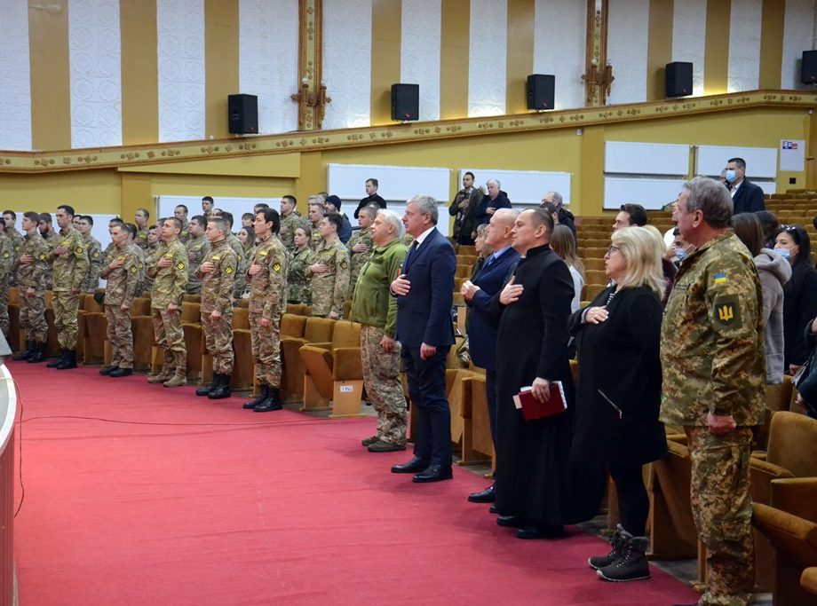 Не чекати поклику, а вже сьогодні ставати офіцерами ЗСУ закликав випускників заступник військового комісара обласного територіального центру комплектування та соціальної підтримки Юрій Мухін. Зокрема, він підкреслив, що кращі сини і доньки України сьогодні захищають на східних кордонах нашої держави захищають і Україну, і її майбутнє та європейський вибір кожного українця.