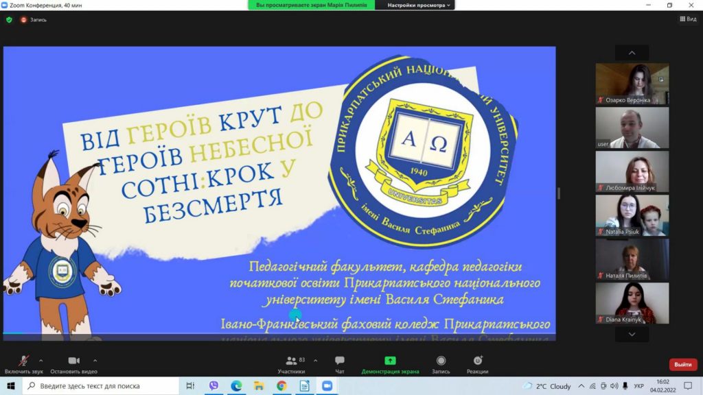 4 лютого 2022 року відбувся поетичний марафон, присвячений героям Крут та героям Небесної Сотні, організатором якого виступили студенти Педагогічного факультету, члени гуртка «Мовні екологи» й учасники проєкту «Університет обдарованої дитини» (УОД), що діє при Прикарпатському національному університеті імені Василя Стефаника, Читати далі