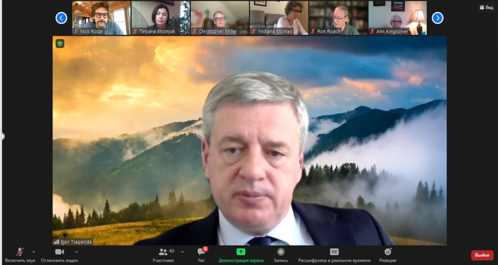 Від українських науковців виступив ректор ПНУ, який відкрив зустріч. У своєму виступі Ігор Цепенда висловив вдячність «американській владі та народу США за величезну підтримку України, без якої нам було б дуже важко протистояти війні з Росією». Ректор також акцентував увагу учасників зустрічі на роботу, яку веде університет серед евакуйованих людей. Зокрема, йшлося про роботу психологів, як серед звичайних людей, так і у військових госпіталях, про культурну та мовну адаптацію біженців – від мовних курсів філологів до екскурсій містом від фахівців та студентів факультету туризму, а також фінансову підтримку університетів та колег, що постраждали від війни й роботу університету як хабу гуманітарних вантажів з Європи.