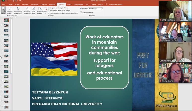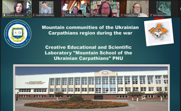 Онлайн-захід «Про вплив війни в Україні на карпатські гірські громади» у форматі «вільний мікрофон» організовано вже вдруге за ініціативи Голови Комітету міжнародних відносин (ІСС) Асоціації Аппалачських студій (АСА) Кетрін Ледфорд, професорки Аппалачського університету та підтримки нашого ЗВО. До неформальної дискусії долучилося близько 40 учасників з України та США.
