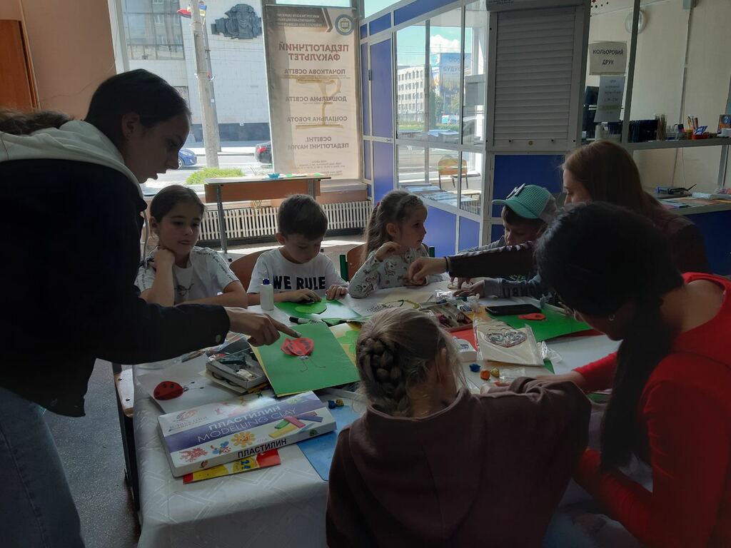 Студенти спеціальності “Дошкільна освіта” познайомили наймолодших учасників майстер-класу з методом пластилінографії та різноманітними видами аплікацій з кольорового паперу. Такий вид роботи розвиває мислення у молодого покоління, бажання придумувати різні ідеї розташування тих чи інших фігур або просто сюжет своєї картини. Тому важливо заохочувати і підштовхувати дітей до створення аплікацій з паперу.