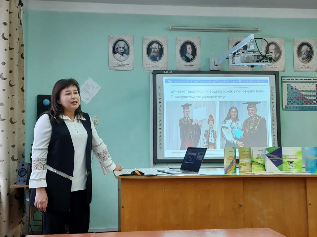 Учні 9-11 класів з цікавістю слухали інформацію про Прикарпатський національний університет імені Василя Стефаника, який є не лише лідером серед закладів вищої освіти в регіоні, а й центром наукової думки. Присутні переглянути відеозвернення доктора політичних наук, професора, ректора Прикарпатського національного університету імені Василя Стефаника Ігоря Цепенди; дізналися про умови вступу, особливості організації освітнього процесу в умовах змішаного навчання, студентське дозвілля, можливість навчатися за програмою подвійних дипломів тощо.