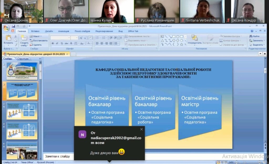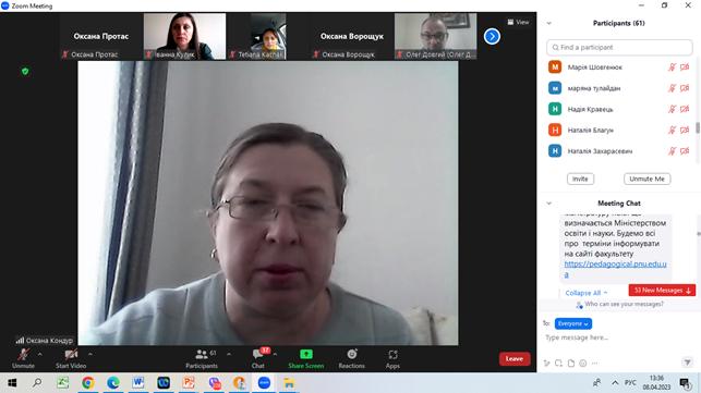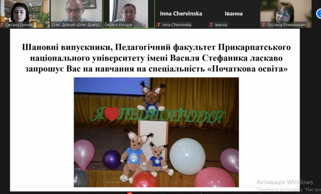 Наприкінці онлайн-зустрічі декан факультету Оксана Кондур відповіла на запитання учасників заходу, запросила майбутніх абітурієнтів на навчання та привітала присутніх з прийдешніми Великодніми святами.