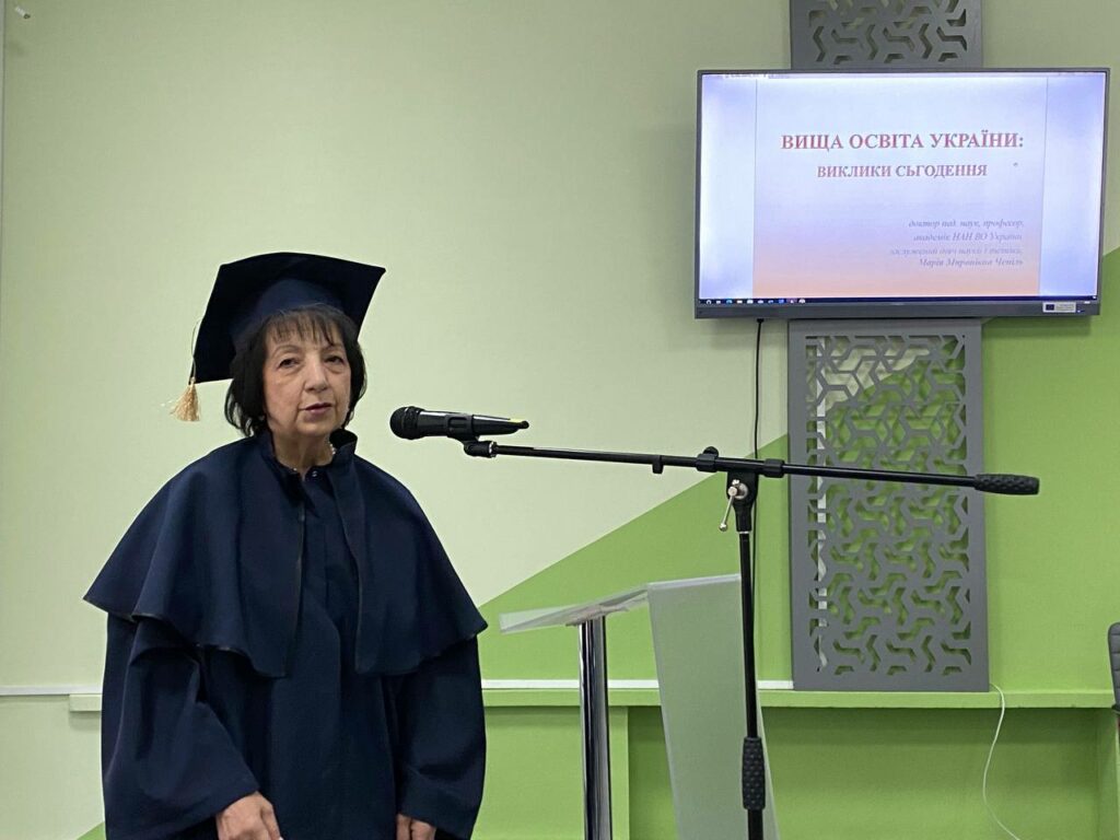 Привітала почесного професора перша проректорка Прикарпатського національного університету Валентина Якубів: «Щиро радію, що ми сьогодні зібралися з такої гарної нагоди. Факультет має чим гордитися і отримує ще один здобуток. Марія Миронівна допомогла нам сформувати нашу педагогічну школу і зараз багато аспірантів, це ті люди, якими ми пишаємося. Надзвичайно приємно, що протягом років було здійснено чимало заходів, реалізовано багато проєктів, виховано велику кількість аспірантів, кандидатів наук, докторів наук. Найважливіше те, що ми маємо плани на розвиток нових співпраць, а досвід, який має наша професорка додасть цінності та успіху у їх діяльності».