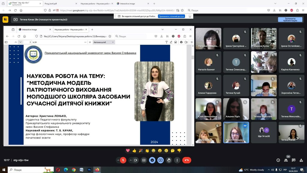 Наукове дослідження на тему «Методична модель патріотичного виховання молодшого школяра засобами сучасної дитячої книжки» Христина Ленько виконала під керівництвом Тетяни Качак, докторки філологічних наук, професорки кафедри початкової освіти. Варто зазначити, що над цією темою студентка працює два роки. Запропонована методична модель апробована в освітньому процесі у початкових класах  Івано-Франківського ліцею № 5  та Лоп’янського ліцею Долинської міської ради Івано-Франківської області, а результати дослідження висвітлені у публікаціях та презентовані на різних конференціях.