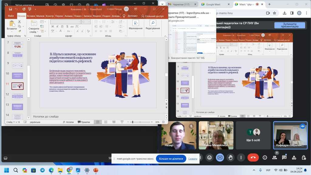 4 квітня 2024 року відбулося секційне засідання звітної наукової конференції за участю студентів педагогічного факультету Прикарпатського національного університету імені Василя Стефаника. Працювало чотири підсекції (педагогіки та освітнього менеджменту імені Богдана Ступарика (керівник Т.В.Паска); теорії та методики дошкільної і спеціальної освіти (керівник Н.В.Захарасевич); початкової освіти (керівник І.М.Гуменюк); соціальної педагогіки та соціальної роботи (керівник І.В.Кулик).