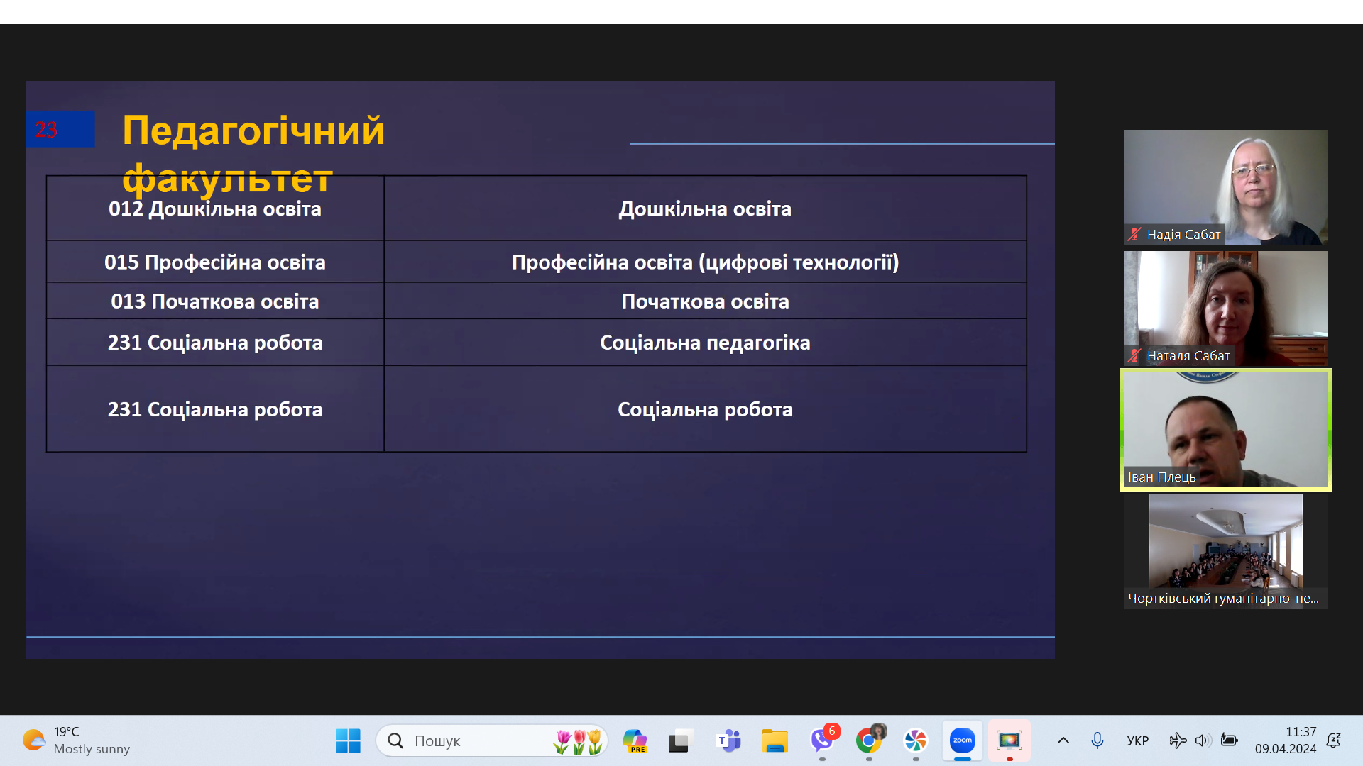 Так, 9 квітня 2024 року, з ініціативи кафедри соціальної педагогіки та соціальної роботи, відбулася онлайн-зустріч зі студентами Чортківського гуманітарно-педагогічного фахового коледжу імені Олександра Барвінського під час якої відповідальний секретар приймальної комісії Іван Плець та представники від кожної кафедри Педагогічного факультету подали потенційним абітурієнтам основну інформацію щодо вступу та навчання в університеті.