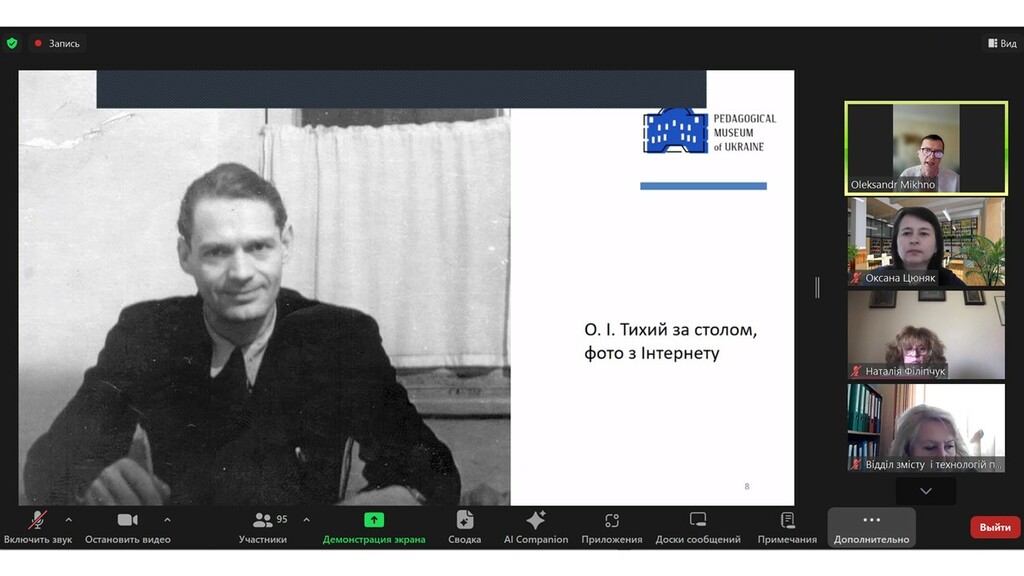 Унікальні біографічні відомості про життя і професійну діяльність Олекси Тихого учасники дізналися від Дмитра Білька. Олександр Міхно ознайомив присутніх з цікавими фактами про педагогічну діяльність Дмитра Білька, який підготував біографічний нарис про Олексу Тихого, а також інформував про те, у яких складних умовах створювався відеоконтент, надісланий паном Дмитром з території військових дій.