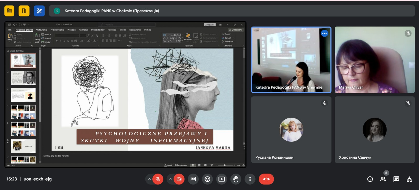 З цікавими доповідями на актуальні теми виступили студенти Державної академії прикладних наук в м. Хелмі. Зокрема, Natalia Urbańska зупинилася на проблемі війни в Україні та її наслідків для мешканців району Хелм. Dorota Emerla, Paulina Matwiejczuk, Julia Król, Natalia Zagożdżan розглянули проблему участі студентів у волонтерстві, мотивації волонтерської діяльності та розвитку на цій основі соціальних навичок, Karolina Brysiak-Baran розкрила роль критичної інфраструктури в обороні держави та ін.