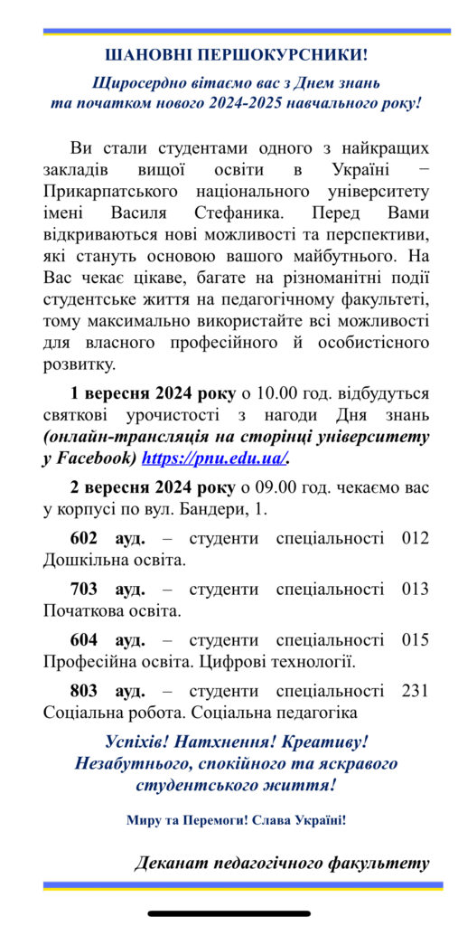 30 серпня 2024 року відбулася нарада з організації виробничої педагогічної практики здобувачів освіти заочної форми навчання спеціальності 013 Початкова освіта першого (бакалаврського) рівня вищої освіти. У її роботі взяли участь викладачі Педагогічного факультету: проф. О.П. Цюняк, проф. Р.Я. Романишин, проф. Л. М. Читати далі