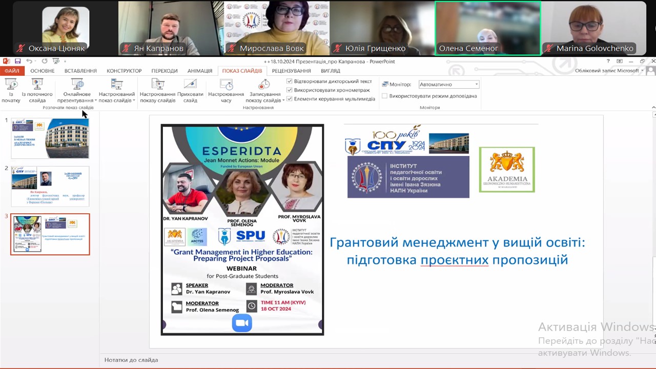 у гостьовій лекції «Грантовий менеджмент у вищій освіті: підготовка