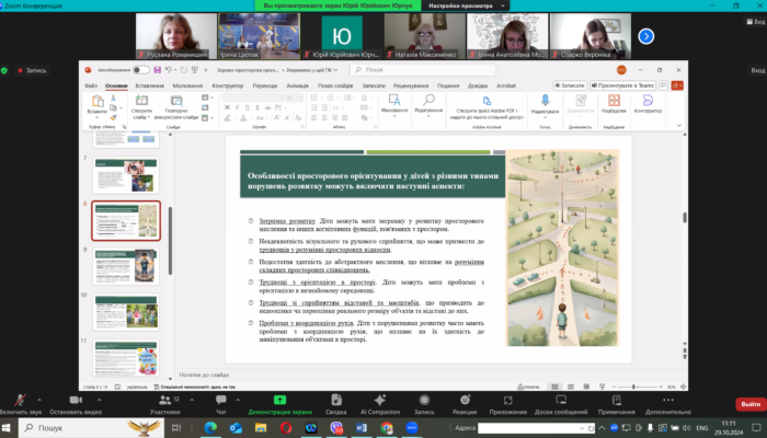 29.10.2024 року викладачками Херсонського державного університету Н.В  Сизовою та  Н.В.  Кабельниковою було прочитано гостьову лекцію на тему: «Профілактика та корекція порушень писемного мовлення у дітей. Методика логопедичної роботи з подолання парціального та тотального недорозвинення мовлення». Викладачі університету та студенти педагогічного факультету мали можливість ознайомитися зі змістом лекції у змішаному форматі: безпосередньо в аудиторії та в режимі онлайн, що надавало можливість для залучення широкої аудиторії слухачів. Викладачі факультету, серед яких – докторки наук, професорки: О.С.Кондур, Н.В.Лисенко, Р.Я.РоманишинГ.А.РусинЛ.В.СливкаО.П Цюняк; кандидатки наук, доцентки: С. Ю. Довбенко, Л. І. Ілійчук, Н.Р.Кирста, О.І. Кіліченко, Н.Б. Максименко брали активну участь в обговоренні актуальних проблем підготовки здобувачів освіти до майбутньої фахової діяльності.