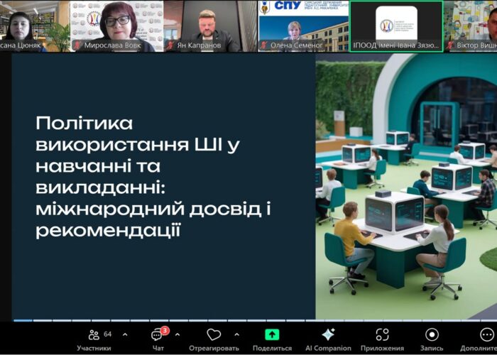 Кирил Котун ознайомив присутніх із політикою використання ШІ у навчанні і викладанні міжнародний досвід і рекомендації. У своєму виступі представив основні міжнародні підходи до інтеграції ШІ в освітній процес, окреслив ключові тенденції, виклики та можливості, які відкриваються перед закладами вищої освіти. Особливу увагу було приділено аналізу міжнародного досвіду використання ШІ в освіті, зокрема принципам етичного застосування технологій, необхідності розвитку цифрової грамотності серед учасників освітнього процесу та важливості формування відповідальної політики щодо впровадження інновацій.