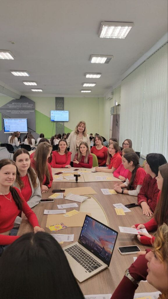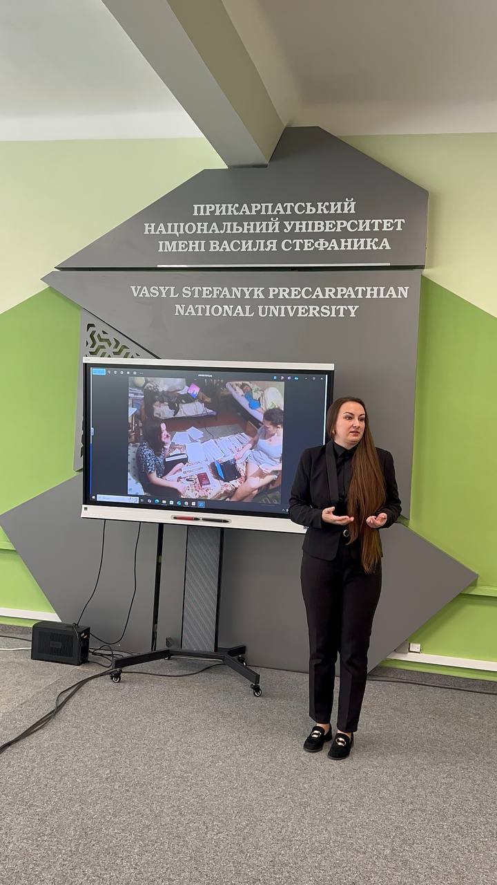 Ірина Малярчук провела інтерактив з п’ятьма студентськими командами, які працювали з кейсом “Герб України як символ волі та єдності”, творчими картками “Пульс життя “, картками для розвитку множинного інтелекту “Слова і сенси “, проводили гру для аналізу фільмів “Анімасфера”, проходили етапи WOW уроку з фінансової грамотності. У результаті активної комунікації учасників команд, творчого вирішення завдань, генерування ідей та їх візуалізації в сервісах Canva і Padlet , студенти 1, 3 і 4 курсів спеціальності “Початкова освіта” презентували цікаві освітні проєкти. Вони також проаналізували запропоновані методи й форми роботи в групах крізь призму трьох основних критеріїв – цінності, традиції, інновації.
