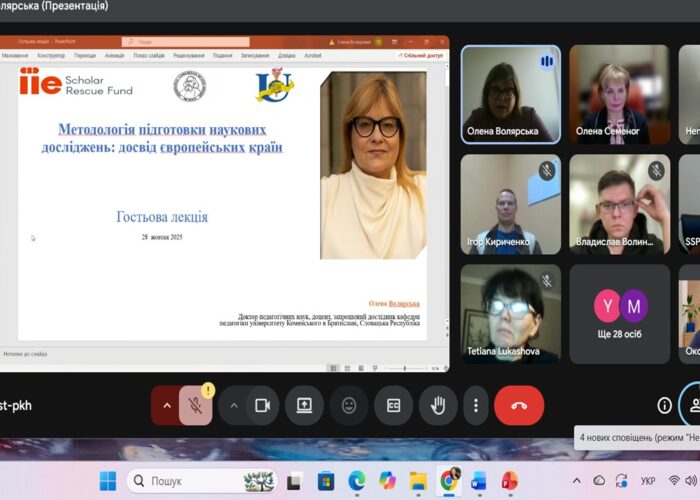 29 жовтня 2025 року аспіранти освітньо-наукової програми «Професійна освіта» разом із гарантом цієї програми професоркою Оксаною ЦЮНЯК взяли участь у міжнародній гостьовій лекції «Методологія підготовки наукового дослідження: досвід європейських країн», яку провела Олена ВОЛЯРСЬКА, докторка педагогічних наук, доцентка, дослідниця кафедри педагогіки філософського факультету Університету імені Яна Коменського у Братиславі (Словаччина) у межах Усеукраїнської онлайн-школи з міжнародною участю «Термінологічна культура фахівця».