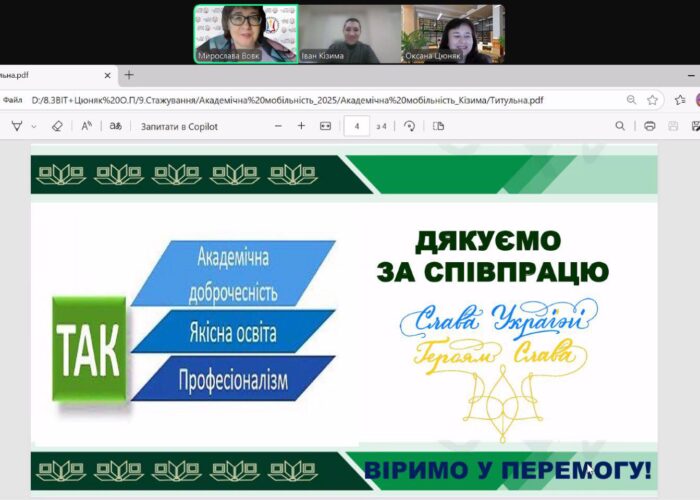 Упродовж з 28 жовтня по 27 листопада 2025 року здобувач третього (освітньо-наукового) рівня вищої ОНП «Професійна освіта» Іван Кізима (науковий керівник Оксана Цюняк) успішно завершив Програму внутрішньої академічної мобільності в Інституті педагогічної освіти і освіти дорослих імені Івана Зязюна НАПНУкраїни під науковим супроводом Мирослави Вовк, доктора педагогічних наук, професора, член-кореспондента НАПН України, завідувача відділу змісту і технологій педагогічної освіти, гаранта освітньо-наукової програми «Педагогічна освіта і освіта дорослих в Україні і зарубіжжі» Інституту педагогічної освіти і освіти дорослих імені Івана Зязюна НАПН.