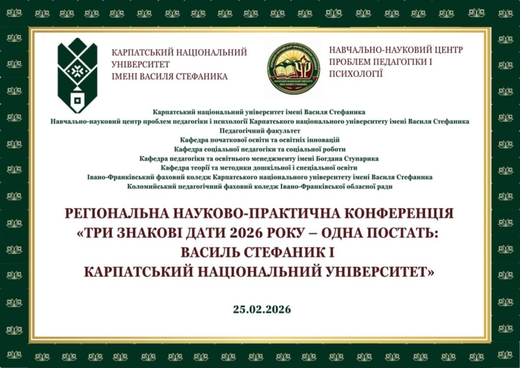 На базі Навчально-наукового центру проблем педагогіки і психології відбулася Регіональна науково-практична конференція «Три знакові дати 2026 року – одна постать: Василь Стефаник і Карпатський національний університет», присвячена персоналії видатного українського письменника та ювілейним датам 2026 року, пов’язаним із його життям і присвоєнням його імені Карпатському національному університету.