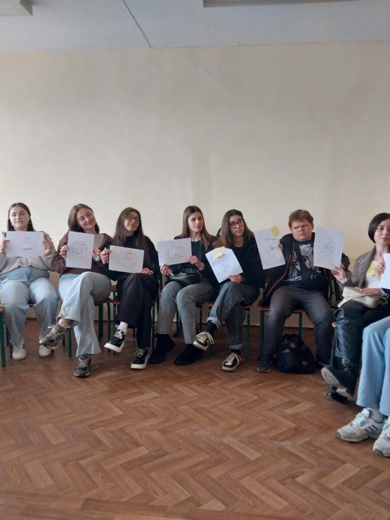 Окремий блок був присвячений опануванню технік психогігієни та самодопомоги. Студенти виконували дихальні й релаксаційні вправи, практикували техніки заземлення, вивільнення емоцій і відновлення внутрішнього ресурсу. Також використовували рефлексивні методики, зокрема «Коло сили», «3-2-1» та метафоричні асоціації, які допомогли учасникам усвідомити власні емоційні стани і професійні виклики.