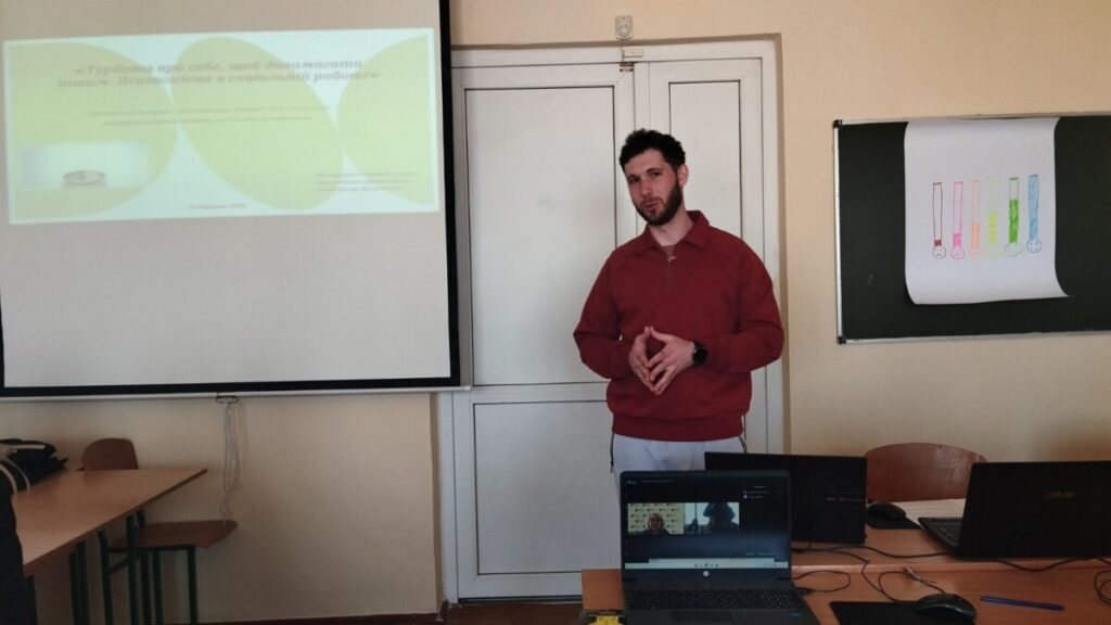18 березня у межах Тижня соціальної роботи на базі Навчально-наукової лабораторії соціальної роботи відбувся практичний тренінг з ментального здоров’я «Турбота про себе, щоб допомагати іншим. Психогігієна в соціальній роботі». Тренінг розробив та провів Назар Галій – випускник спеціальності «Соціальна робота», а зараз – здобувач третього (освітньо-наукового) рівня вищої освіти ступеня доктора філософії за спеціальністю 015 Професійна освіта (за спеціалізаціями) педагогічного факультету під керівництвом професорки кафедри соціальної педагогіки та соціальної роботи Галини Михайлишин.