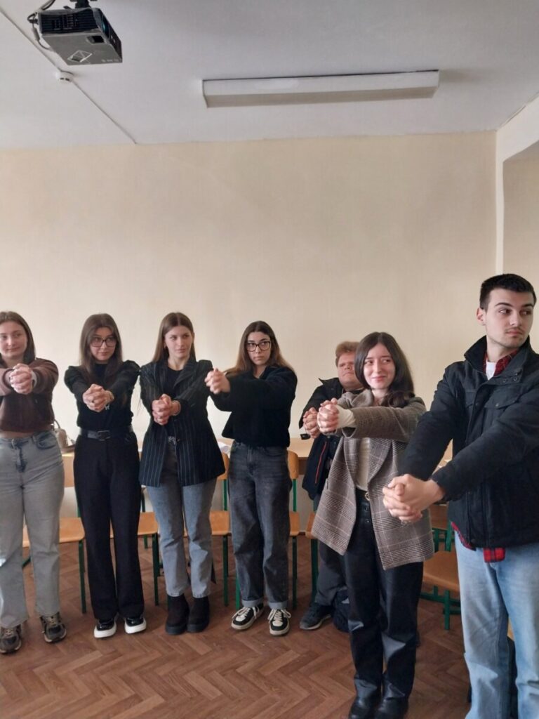 Окремий блок був присвячений опануванню технік психогігієни та самодопомоги. Студенти виконували дихальні й релаксаційні вправи, практикували техніки заземлення, вивільнення емоцій і відновлення внутрішнього ресурсу. Також використовували рефлексивні методики, зокрема «Коло сили», «3-2-1» та метафоричні асоціації, які допомогли учасникам усвідомити власні емоційні стани і професійні виклики.