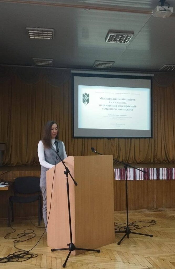 Доцентка кафедри соціальної педагогіки та соціальної роботи Наталія Сабат у доповіді на тему «Міжнародна мобільність як складова підвищення кваліфікації сучасного викладача» висвітлила значення академічної мобільності для професійного розвитку викладачів, розширення їхніх наукових і педагогічних можливостей, а також інтеграції у світовий освітній простір.
