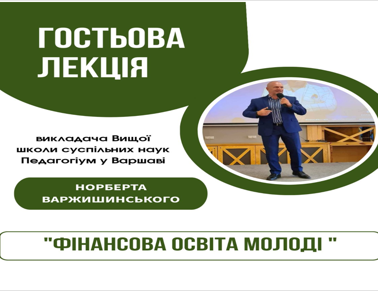 22 квітня 2026 р. відбулася гостьова лекція викладача Вищої школи суспільних наук Педагогіум у Варшаві, віце-президента клубу DuoLife  Норберта Варжишинського з теми «Фінансова освіта молоді» для студентів педагогічного факультету. Лектор наголосив, що в умовах сучасності, коли навколо багато проблем, невизначеності, фінансова грамотність стає однією із ключових у житті кожної людини. Уміння управляти власними коштами, розуміти фінансові інструменти, їх переваги та ризики допомагають сформувати надійний фундамент для майбутнього і почуватися більш упевнено за будь-яких обставин.